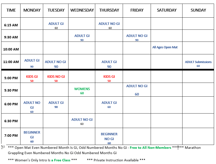 Adult Classes are approximately 90 minutes with an additional 30 minutes after class is over for rolling and questions.